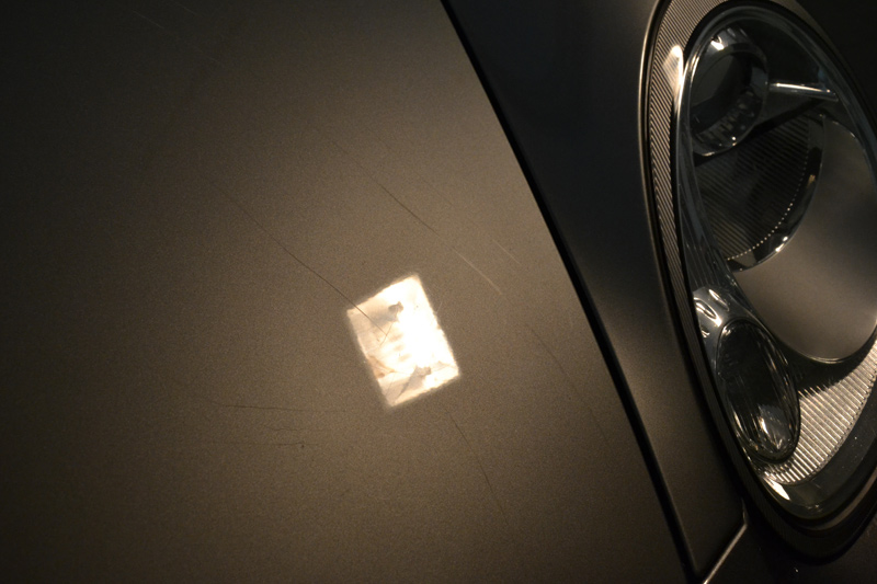 Твердый лак на немецком кроссовере Porsche Cayenne в среднем имеет толщину 130 мкм. Перед нами стояла задача не только безопасно убрать царапины и восстановить блеск, но и защитить ЛКП. Поэтому, после полировки на кузов было нанесено нанопокрытие — жидкое стекло.