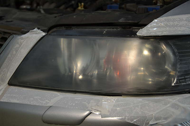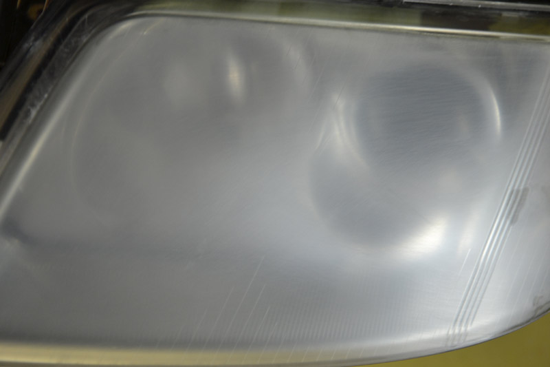 Для этого используют шлифматериал с более крупным размером абразива. Шлифовка фары производиться поэтапно — от крупного зерна до мелкоабразивного. Размер абразива и, соответственно, количество этапов шлифовки зависят от степени (глубины) повреждений.